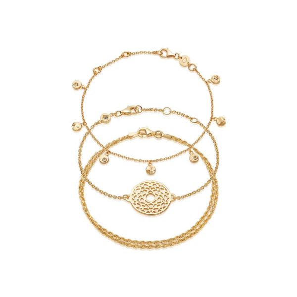 If you love a little sparkle around your wrist we have you covered with this layering set. The Crown Chakra Bracelet will bring awareness and thoughtfulness to the wearer while the two additional chains will be sure to bring the shine. All these bracelets are carefully crafted in 18ct gold plated silver and make for effortless everyday styling to add the finishing touch to any outfit.