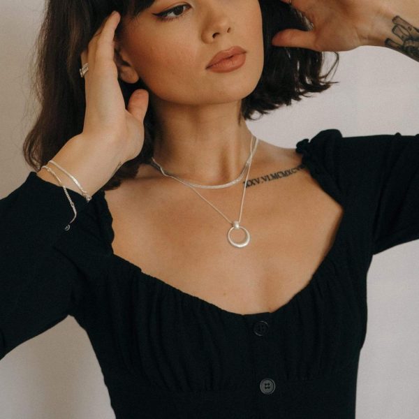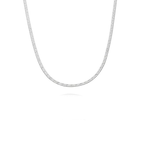 The Estée Lalonde Flat Snake Chain Necklace is crafted in sterling silver that sits elegantly on the collarbone making it a timeless piece.