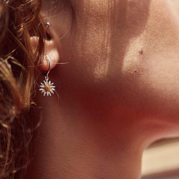 Your new favourite flower. Featuring a sterling silver and gold plate daisy charm, these pretty drop earrings work well in any piercing. A jewellery box staple that will have you dreaming of hazy days spent in the sunshine.
