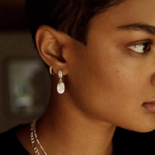 The perfect floral drop earrings for those who need a bit calm energy and peace of mind. Handcrafted in 100% recycled sterling silver with a subtle matte finish, the Lavender Drop Earrings feature the imprinted stems of lavender, cast on an oval pendant and hung from stylish chunky huggie hoops.