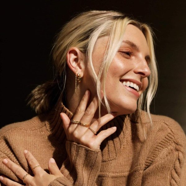 Looking to elevate your ear game? We’ve got you. Our ‘Go With The Flow’ tripple earring stack consists of the Estée Lalonde Box Chain Earrings, the Estée Lalonde Flow Huggie Earrings and the Estée Lalonde Flow Midi Hoop Earrings. Whether you’re going glam or keeping it cosy, this is the stack for you.
