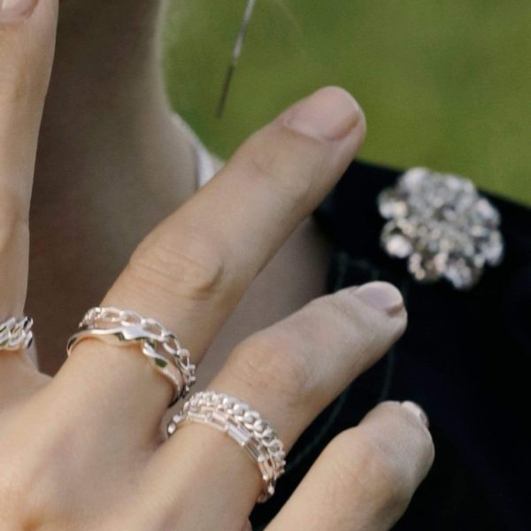 These beauties are a jewellery box essential, adding a touch of shine and sophistication to your everyday style. Featuring elegant, simple chains crafted in sterling silver, the Estée Lalonde Curb Chain Ring, the Estée Lalonde Box Chain Ring and the Estée Lalonde Fine Box Chain Ring look amazing doubled up for an effortless look.