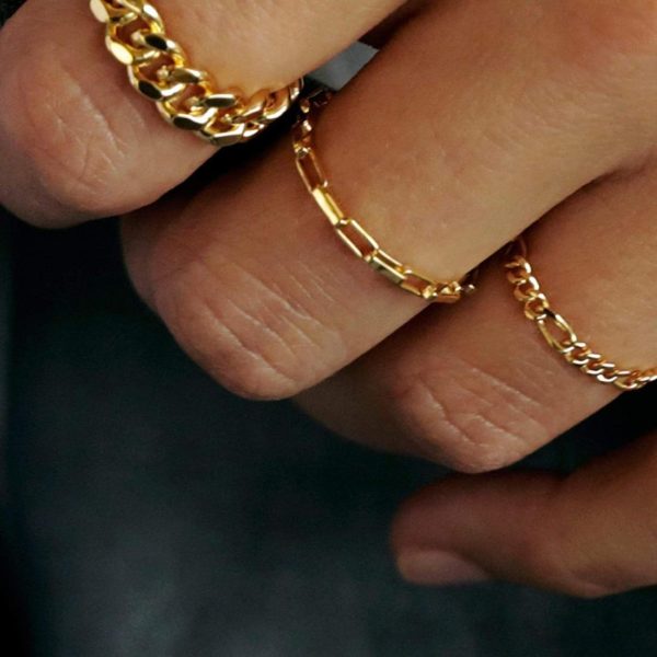 The Estée Lalonde Box Chain Ring is also available in silver.