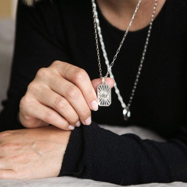 If you loved the Shield Necklace from our original collection, you’ll love this beauty too. Made with sterling silver, this necklace features our classic collection symbol within a geometric pendant. Set on a statement chain, the Goddess Shield Necklace is the perfect addition to your day-to-day aesthetic and looks great layered over a knit.