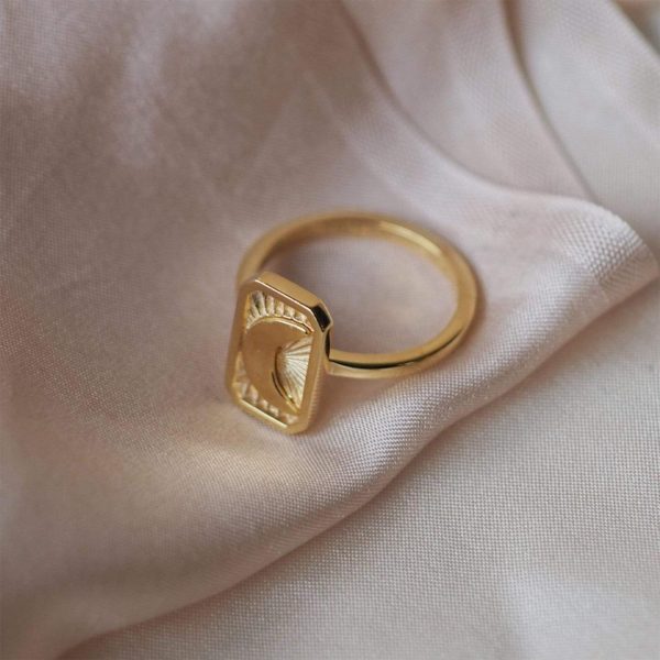 The search is over: your new favourite ring has arrived. The Luna Ring, handcrafted in 18ct gold plated silver, showcases a delicately carved crescent moon on a textured framed backdrop. Style her solo or add to your Goddess ring stack as the perfect everyday, statement piece.