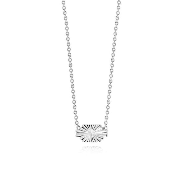 Textured to the touch and intricately engraved, the sterling silver necklace features the sunburst pattern on a small shield pendant and is the kind of piece you won’t want to take off.