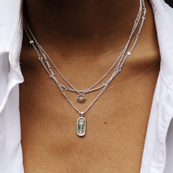 Crafted in sterling silver, this necklace features sunbursts on a delicate chain, that glimmer subtly as they catch the light.