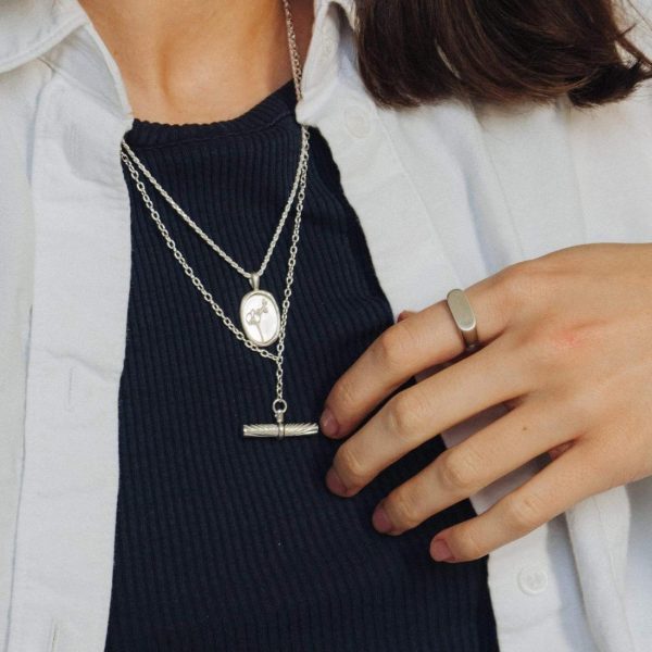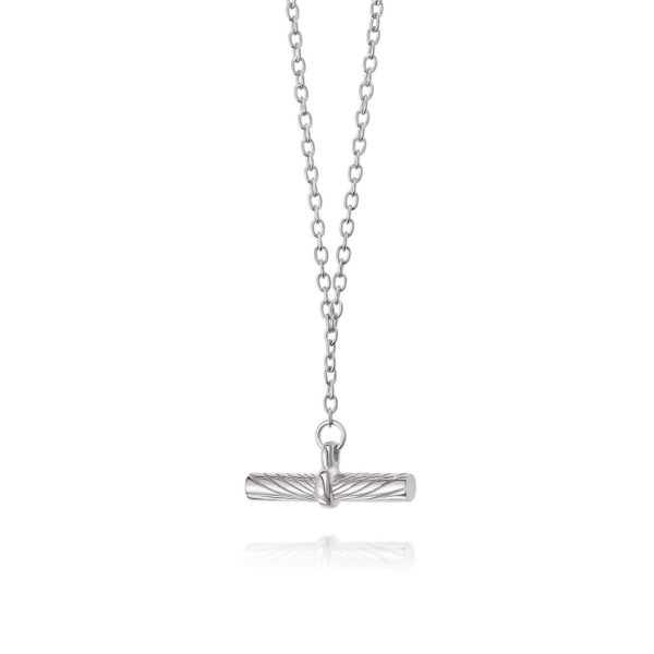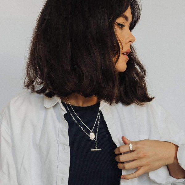 Your new everyday must-have, the Estée Lalonde T Bar Necklace is a modern twist on a classic. You can thank us later. The delicately engraved T Bar pendant hangs from a linked chain and can be worn alone or layered with other necklaces in the Estée Lalonde for Daisy London collection.