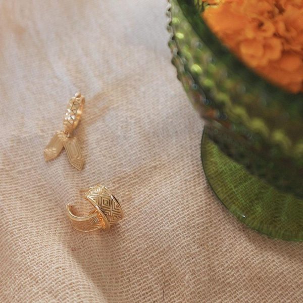 The statement hoop of the season has arrived. Featuring a richly engraved aztec pattern set within a beautifully smooth border our Artisan Chunky Hoop Earring will become your new forever go-to, a tactile reminder of warm sun, soft sand and hidden markets. Handcrafted in 18ct gold plated silver, these earrings will be the hero of your jewellery box and make for an effortlessly put together look.