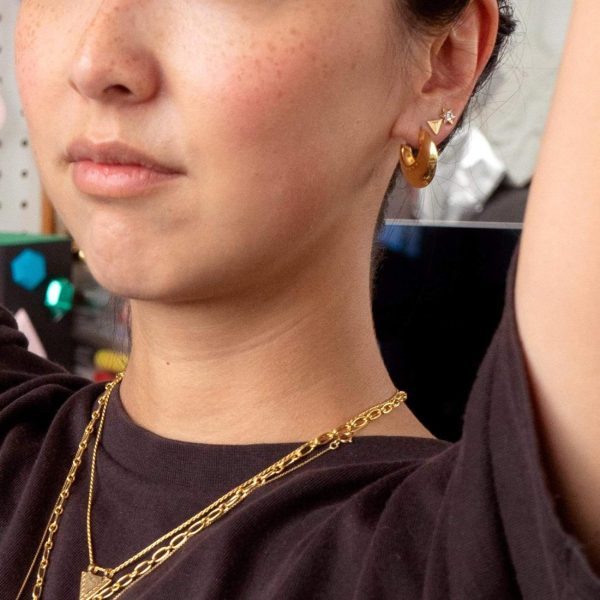 Add some serious statement to your earring stack with our Artisan Stamped Large Hoops. Sculpted from 18ct gold plated sterling silver these must-have hoops feature a silky smooth surface with a delicate stamped through pattern. An everyday head turner from our jewellery box to yours.
