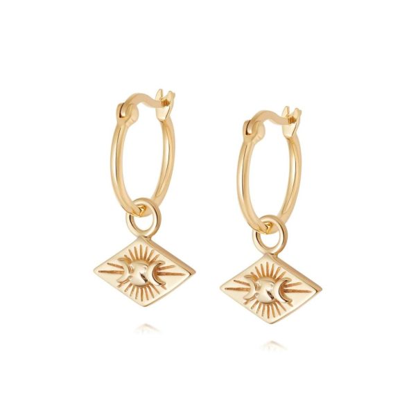 The Estée Lalonde Goddess Charm Hoop Earrings are also available in silver.