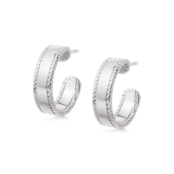 Daisy London Jewellery Hoop Earrings | Stacked Roped Midi Hoop Earrings Sterling Silver Women