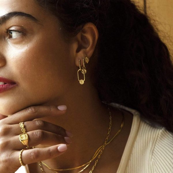 Summer ear stacking made easy with the Daisy Bloom Huggie Earrings. Spread the love and gift yourself a huggie with this small but perfectly formed pair. Hand-crafted in 100% recycled sterling silver with 18ct gold plating, featuring an engraved wild daisy symbol, these cuties will get you in the festival spirit all year round.