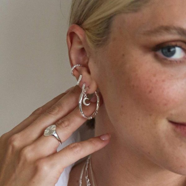 Your new styling staple, sorted. A layering dream, the Estée Lalonde Luna Huggie Charm Earrings are handcrafted in sterling silver and feature delicately carved mismatched charms to symbolise the changing phases of the moon.