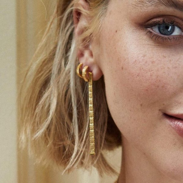 Say hello to your new best friends. Small, yet perfectly formed, our Estée Lalonde Sunburst Huggie Hoops are the sort of jewellery staple you’ll never want to take off. Crafted in 18ct gold plated silver, the subtle engraved texture catches the light making them perfect for layering or worn solo.