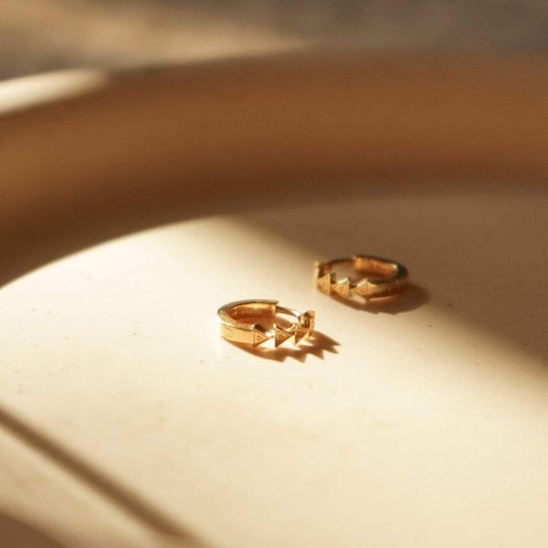 The Eve Huggie Hoop Earrings are a layering dream. Hand-crafted in 18ct gold plate, they fuse together artisan details with classic shapes. For a fresh take on stacking double up these essential huggies.