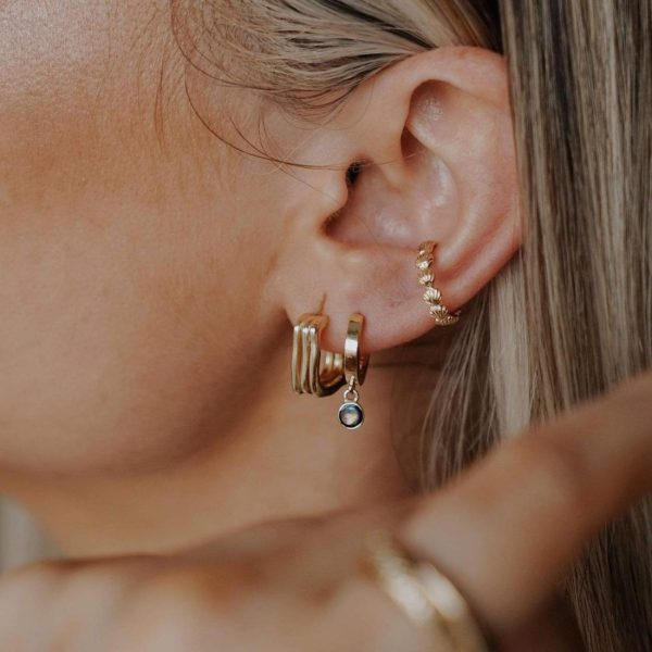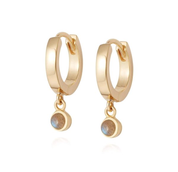 Goodbye negativity, hello confidence. These classic huggie hoops feature a slice of the iridescent gemstone set on 18ct gold plated charms. A protector against pessimism, the Labradorite crystal helps us to push negative feelings aside and instead encourages us to be the best version of ourselves. Perfect to pair with other healing stone pieces for good energy wherever the day takes you.