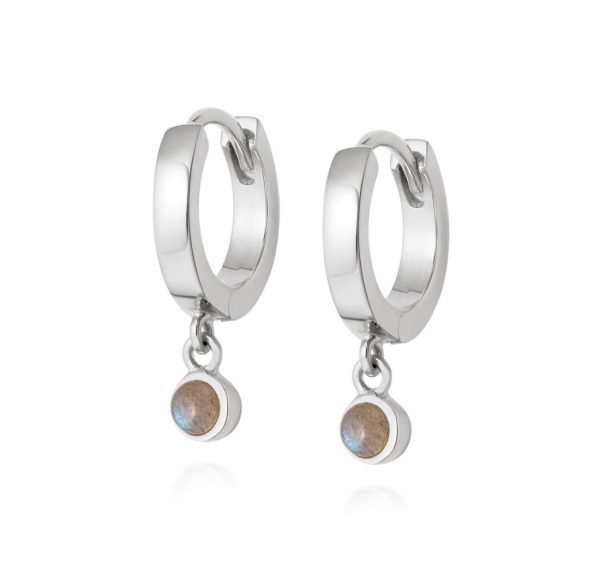 Goodbye negativity, hello confidence. These classic huggie hoops feature a slice of the iridescent gemstone set on delicate sterling silver charms. A protector against pessimism, the Labradorite crystal helps us to push negative feelings aside and instead encourages us to be the best version of ourselves. Pair with other healing stone pieces for good energy all day, everyday.