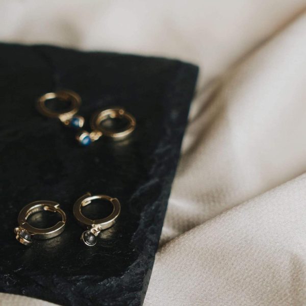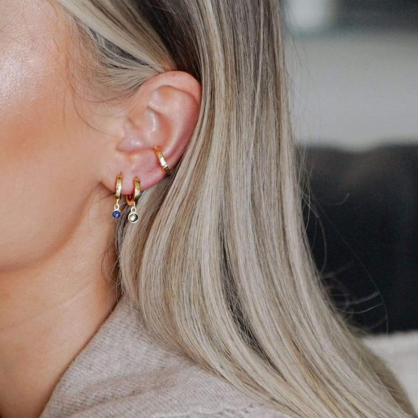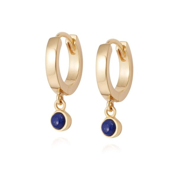 Make like Cleopatra and channel your inner goddess. This huggie hoop features deep blue gemstones set on delicate 18ct gold plated charms. Lapis is said to encourage creativity and bring out our inner truth; wear these must-have hoops solo for simplicity or mix up your style and stack both in one ear for a statement look with added meaning.