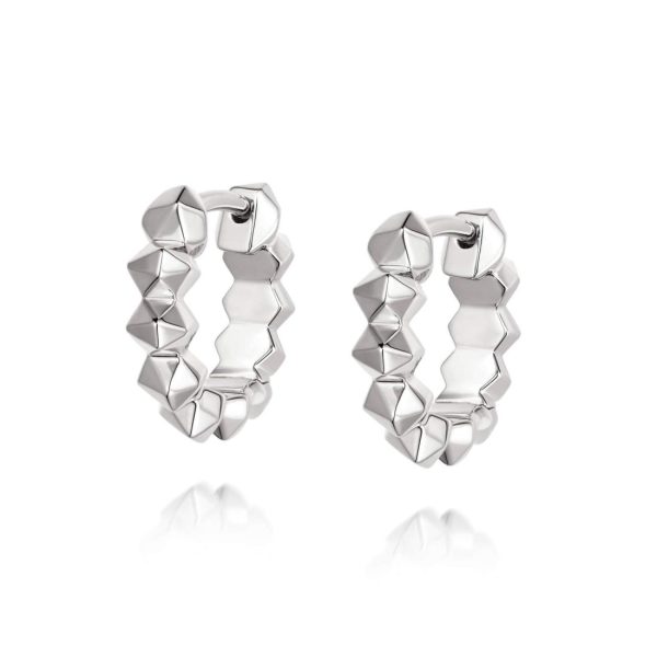 Go bold or go home. Our Octavia Huggie Hoop Earrings feature unmissable shapes and textures. Crafted in 100% recycled sterling silver these must-have huggies give an instant edge to your ear stack. Sitting close to the ear these look great in the upper lobe or Helix piercings. Or why not try wearing solo for a subtle statement?