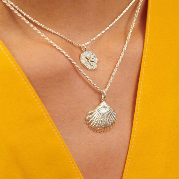 The new hero of your jewellery box, the Isla Large Shell Necklace is made from sterling silver and features a solid, scalloped clam shell hanging from a long length thick rope chain that fastens with a lobster clasp.