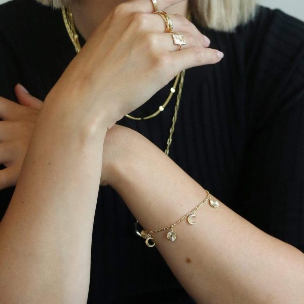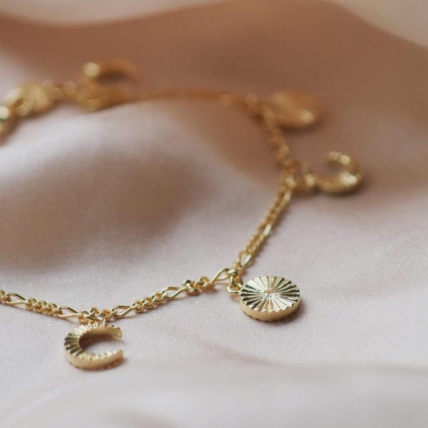 An old favourite made modern. Set on an intricate figaro chain, the Estée Lalonde Luna Charm Bracelet, has the phases of the moon hung throughout for that nostalgic jingle jangle synonymous with the charm bracelets from our past.