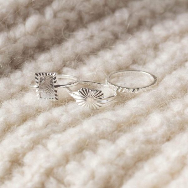 This ring features an engraved sun center, set within a rich, textured border and is crafted in sterling silver.