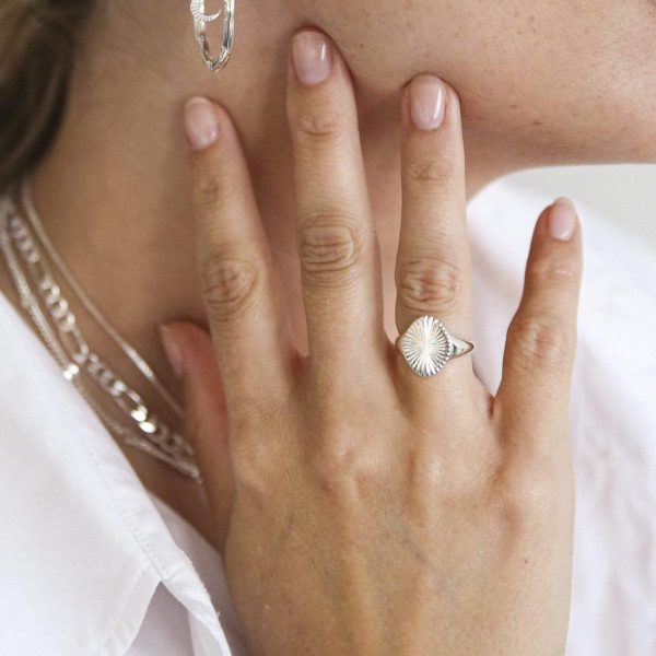 Daisy London Jewellery Stacking Rings | Estée Lalonde Sunburst Signet Ring Sterling Silver Women